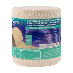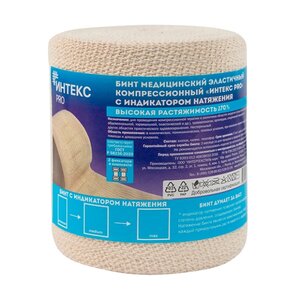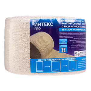 Бинт эластичный Интекс PRO компрессионный высокой растяжимости с индикатором натяжения 10 см х 5 м