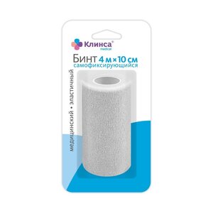 Бинт самофиксирующийся Клинса медицинский эластичный 4 м х 10 см белый