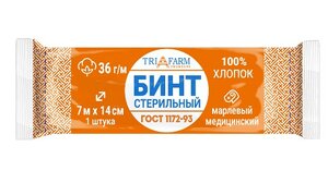 Бинт марлевый стерильный 7 м х 14 см