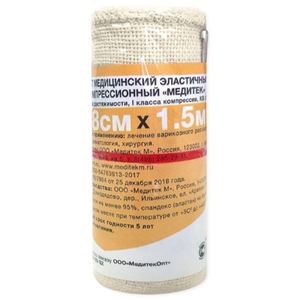 Бинт эластичный компрессионный Медитек высокой растяжимости 1 класс 8 см х 1.5 м