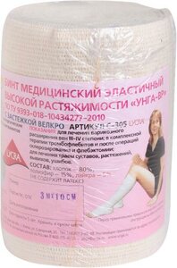Бинт Унга-ВР медицинский эластичный высокой растяжимости с застежкой белый арт. С-305 10 см х 5 м