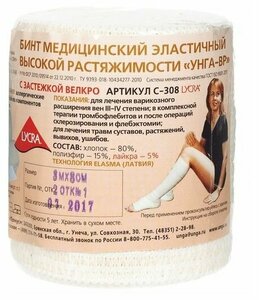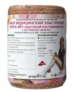 Бинт эластичный Унга-ВР высокой растяжимости 3 м х 8 см арт. С-308