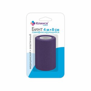 Бинт самофиксирующийся Клинса медицинский эластичный 4 м х 8 см фиолетовый
