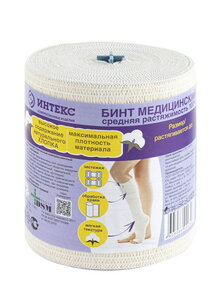 Бинт эластичный Интекс Венопроф с ионами серебра средней растяжимости 10 см х 3 м