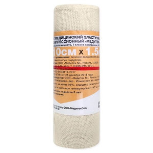 Медитек бинт эластичный компрессионный высокой растяжимости 1 класс 10 см х 5 м арт. КВ 01