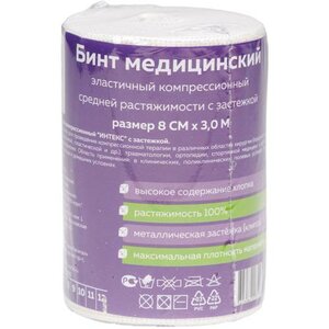 Бинт эластичный Интекс Лайт средней растяжимости с застежкой 3.5 м х 8 см