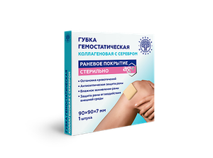 Губка гемостатическая коллагеновая с серебром 50 х 50 х 7 мм 1 шт.