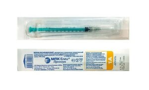 Шприц инсулиновый МПК Елец U-100 3-х компонентный с иглой 0.4 х 12 мм 1 мл 100 шт.
