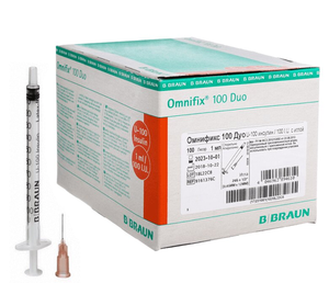 Шприц инсулиновый B.Braun Omnifix 100 duo 3-х компонентный 26G 0.45 х 12 мм 1 мл х 100 шт.