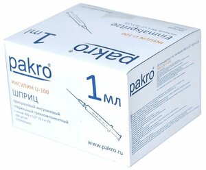 Шприц инсулииновый Pakro 3-х компонентный U-100 30G 0.3 х 13 мм 1 мл 100 шт.