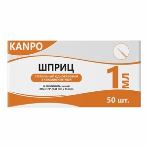 Kanpo шприц инсулиновый U-100 29G 0.33 х 13 мм 1 мл 10 шт.