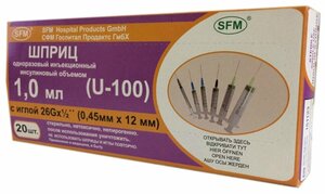 Шприц инсулиновый SFM с иглой 26G 0.45 х 12 мм 1 мл 1 шт.