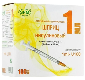 Шприц SFM инсулиновый U-100 с иглой 26G 0.45 мм х 12 мм 1 мл 100 шт.