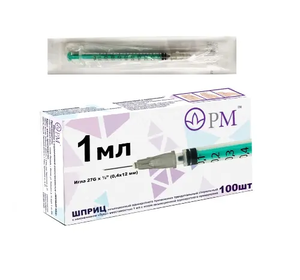 Шприц одноразовый инсулиновый 26G 0.45 х 12 мм 1 мл