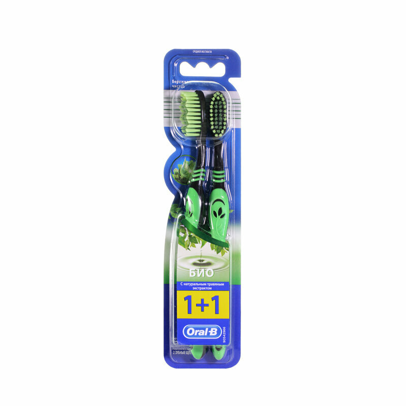 Мануальная зубная щетка Oral-B БИО с натуральным экстрактом нима эффективно очищает зубы и десны. Волнообразно стриженные щетинки повторяют форму зубов, обеспечивая лучшую чистку межзубных промежутков и удаление налета. Специальная подушечка для чистки языка поддерживает свежесть дыхания при регулярном применении за счет удаления бактерий, вызывающих неприятный запах изо рта. В комплекте идут 2 зубные щетки средней жесткости. Напоминаем о замене вашей щетки каждые три месяца для эффективной чистки. Oral-B – №1 марка, рекомендуемая большинством стоматологов в мире на основании результатов опросов, проведенных с ноября 2019 г. по июнь 2021 г. и подтвержденных как статистически значимые Компанией Radius Illumination, сент. 2021 г.
