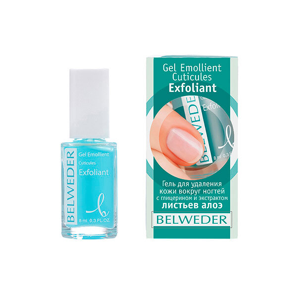 Бельведер гель для удаления кожи вокруг ногтей - мягкий пилинг для кутикулы.Равномерно, гладко и быстро устраняет избыток кожи вокруг ногтя.Предназначен для самостоятельного ухода за кутикулой.Используется вместо обработки ножницами.Нет риска травмирования и инфицирования.Позволяет выполнить маникюр профессионально.Содержит увлажняющие компоненты (глицерин, масло жожоба, аллантоин и экстракт листьев алоэ).