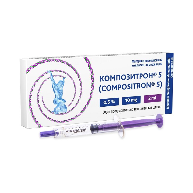 Композитрон является медицинским изделием для укрепления и восполнения микроструктур внеклеточного матрикса соединительной ткани и протезирования коллагеном синовиальной жидкости. Он может быть рекомендован для улучшения подвижности суставов, поддержания соединительнотканных структур мышц, сухожилий, связок и менисков при дегенеративных процессах, вызванных старением, травмами, повышенными нагрузками и постуральными нарушениями. Он также может применяться при хирургических вмешательствах на суставах с целью ускорения функционального восстановления и улучшения состояния пациентов в послеоперационном периоде, а также при противодействии физиологическому старению и / или дегенерации соединительной и хрящевой тканей. Гидролизованный коллаген позволяет восполнить и укреплять коллагеновый матрикс тканей, поврежденных процессами естественного старения, дегенеративными и воспалительными патологиями, травматическими воздействиями. Клинические эффекты введения экзогенного коллагена обусловлены механическим действием по восстановлению естественной структуры и функциональных свойств соединительной ткани, укреплению мышечно-сухожильного и капсульно-связочного аппарата, что, например, может улучшать подвижность суставов, восстанавливать эластичность внеклеточного матрикса, и уменьшать (косвенный эффект) болевые симптомы. Пополнение внеклеточного матрикса и микроструктур соединительной ткани позволяет при внутрикожном введении восполнить и укрепить коллагеновый матрикс кожи, поврежденный в процессе естественного старения и травматических воздействий.