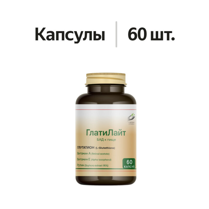 L-глутатион, микрокристаллическая целлюлоза (носитель), оболочка капсулы (желатин пищевой или гидроксипропилметилцеллюлоза), рутин, витамин Е (DL-альфа токоферола ацетат), витамин А (ретинола ацетат).
