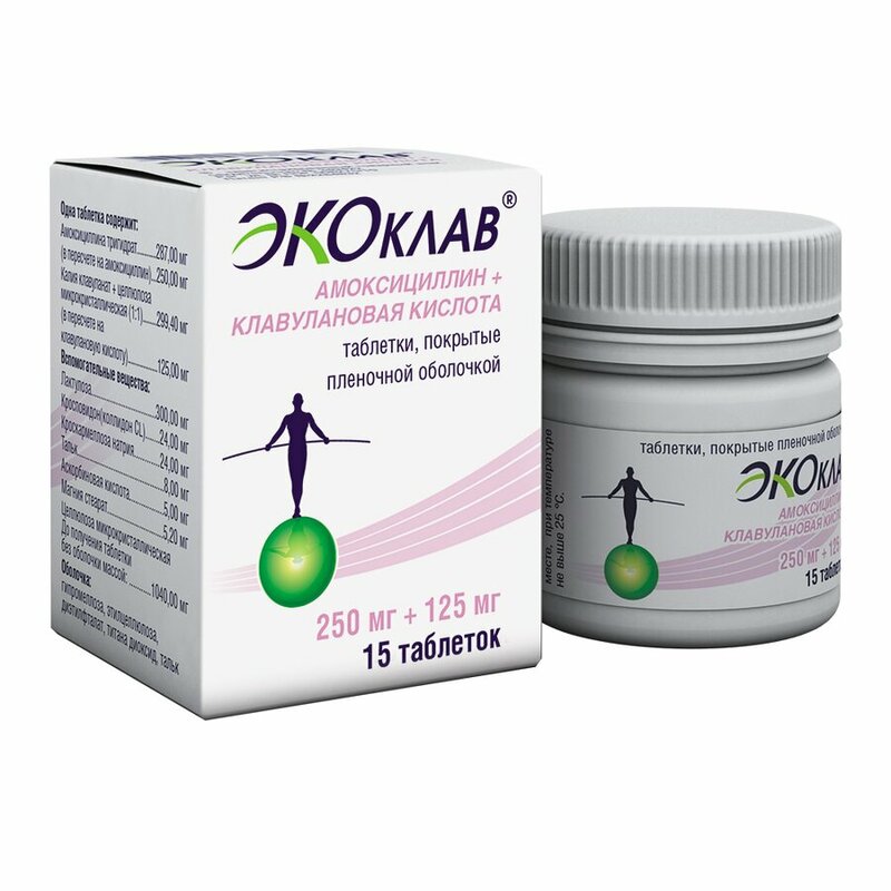 Инфекции, вызванные чувствительными к амоксициллину микроорганизмами, можно лечить препаратом Экоклав, поскольку амоксициллин является одним из его действующих веществ. Препарат Экоклав также показан для лечения смешанных инфекций, вызываемых микроорганизмами, чувствительными к амоксициллину, а также микроорганизмами, продуцирующими бета-лактамазу и чувствительными к комбинации амоксициллина с клавулановой кислотой.