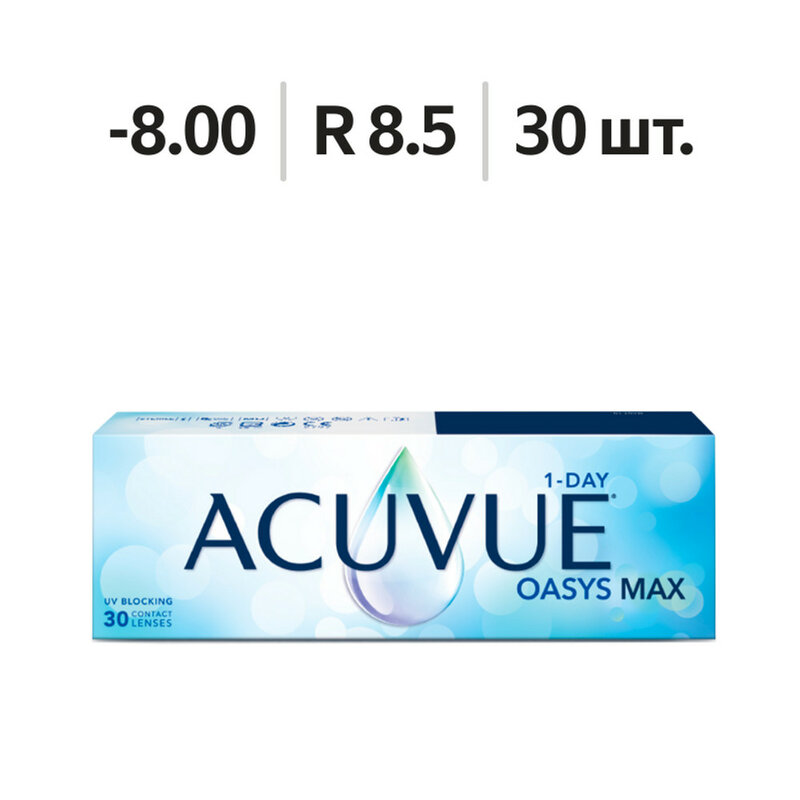Однодневные контактные линзы ACUVUE® OASYS MAX 1-Day созданы для чёткого зрения и максимального комфорта ваших глаз. • Технология увлажнения TearStable® уменьшает испарение влаги с поверхности линзы, чтобы комфорт оставался с вами в течение всего дня – даже при длительном использовании гаджетов. • Фильтр OptiBlue частично фильтрует синий свет и уменьшает блики и ореолы, чтобы картинка оставалась четкой и яркой при разном уровне освещенности и за экранами цифровых устройств. • ACUVUE® OASYS MAX 1-Day позволяют глазам «дышать» – как будто вы не носите линзы. • УФ-фильтр 1 класса помогает защитить глаза от вредного излучения.