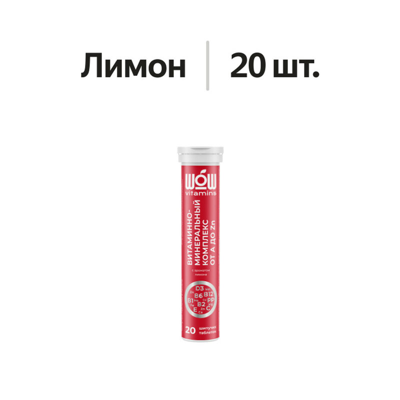 Регуляторы кислотности (лимонная кислота, натрия гидрокарбонат), декстроза, кальция глицерофосфат, L-аскорбиновая кислота, стабилизатор полиэтиленгликоль, никотинамид, подсластитель аспартам, магния сульфат, DL-альфа-токоферола ацетат, ароматизатор лимон, D-пантотенат кальция, рибофлавин, тиамина мононитрат, пиридоксин гидрохлорид, железа сульфат, марганца сульфат, цинка сульфат, ретинола пальмитат, фолиевая кислота, меди сульфат, натрия молибдат, D-биотин, холекальциферол, цианокобаламин.