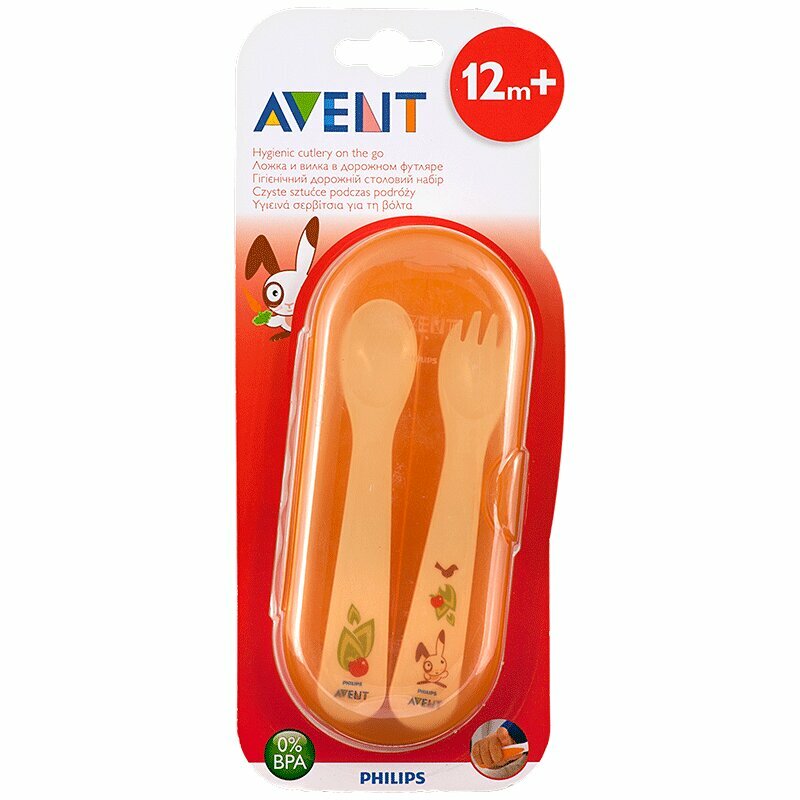 Набор столовых приборов Avent (ложка, вилка) в дорожном футляре с 12 месяцев