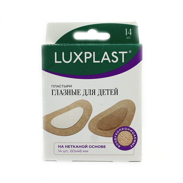 LUXPLAST ПЛАСТЫРИ МЕДИЦИНСКИЕ ГЛАЗНЫЕ НА НЕТКАНОЙ ОСНОВЕ ДЛЯ ДЕТЕЙ - атравматичный, паропроницаемый, сорбционный Размер: 60x48 мм Пластырь на нетканой основе телесного цвета. Пластыри глазные предназначены для закрытия/прикрытия глаза. Пластыри можно использовать как вторичную повязку поверх стерильной салфетки для закрытия глаза при послеоперационной реабилитации. ЭКСПЛУАТАЦИОННЫЕ ОГРАНИЧЕНИЯ: один пластырь использовать не более 24 часов.