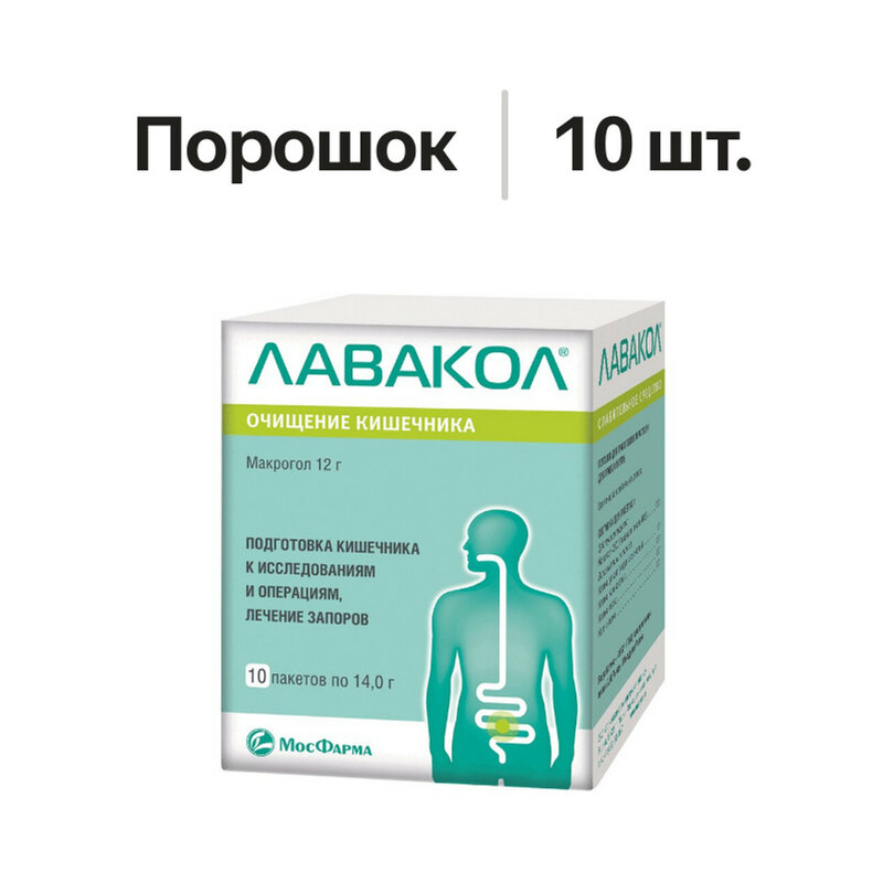 Лавакол представляет собой осмотическое слабительное средство, в состав которого входят макрогол 4000 (полиэтиленгликоль) и электролиты (натрий, калий, гидрокарбонат и хлориды). Высокомолекулярное соединение макрогол 4000 представляет собой длинные линейные полимеры, которые с помощью водородных связей способны удерживать молекулы воды. После приема внутрь препарат увеличивает объем жидкости в кишечнике. Объем неабсорбированной содержащейся в кишечнике жидкости обеспечивает слабительное действие раствора препарата. Входящие в состав препарата электролиты обеспечивают поддержание состава плазмы крови. Концентрация электролитов в растворе препарата Лавакол такова, что электролитный обмен между содержимым кишечника и плазмой крови практически сводится к нулю. Таким образом, присутствие электролитов в препарате Лавакол препятствует их потере из организма при прохождении большого количества жидкости через желудочно-кишечный тракт на фоне применения препарата.