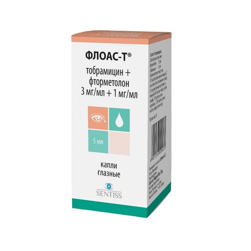 Комбинированное лекарственное средство для местного применения в офтальмологии. Тобрамицин - антибиотик широкого спектра действия из группы аминогликозидов. Оказывает бактерицидное действие, нарушенная синтез белка и проницаемость цитоплазматической мембраны микробной клетки. Активен в отношении грамотрицательных бактерий: Escherichia coli, Proteus spp. (индол-положительные и индол-отрицательные штаммы), Klebsiella spp., Serratia spp., Providencia spp., Enterobacter spp., Shigella spp., Salmonella spp., Citrobacter spp., Haemophilus influenzae, Pseudomonas aeruginosa; грамположительных бактерий: Staphylococcus spp. (в т.ч. штаммы, продуцирующие пенициллиназу), некоторых штаммов Streptococcus, включая некоторые бета-гемолитические виды группы А, некоторые негемолитические виды и некоторые штаммы Streptococcus pneumoniae. Устойчивость бактерий к тобрамицину может развиваться после длительного применения. Фторметолон - синтетический ГКС, производное дезоксипреднизолона. ГКС связываются с цитоплазматическими рецепторами и контролируют синтез медиаторов инфекции, таким образом, снижая воспалительные реакции (отек, осаждение фибрина, расширение капилляров, миграцию фагоцитов), а также пролиферацию капилляров, процессы отложения коллагена и рубцевания. Несмотря на то, что местные кортикостероиды часто повышают внутриглазное давление, как в здоровых глазах пациентов, так и в глазах пациентов с повышенным внутриглазным давлением, фторметолон увеличивает внутриглазное давление в меньшей степени, чем, например, дексаметазон. Исследования показали, что лечение фторметолоном в течение 6 недель приводило к повышению внутриглазного давления статистически значимо меньше, чем при терапии дексаметазоном (среднее значение в группе дексаметазона - 9 мм рт.ст., в группе фторметолона - 3 мм рт.ст.). При местном применении системная абсорбция тобрамицина низкая. Кортикостероиды абсорбируются в водянистую влагу, роговицу, радужную оболочку и цилиарное тело. При местном применении 0.1% суспензии фторметолона меченной тритием, Cmax радиоактивного вещества была достигнута через 30 мин после введения в водянистой влаге. Было отмечено быстрое накопление метаболита в высоких концентрациях, как в водянистой влаге, так и в роговице, что показывает, что фторметолон метаболизируется при проникновении в роговицу и водянистую влагу.
