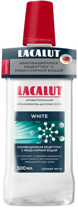 Антибактериальный ополаскиватель для полости рта Lacalut white снижает образование зубного налета и дополнительно очищает поверхность эмали благодаря мицеллам. Пирофосфат осветляет и поддерживает природную белизну зубов. Фторид укрепляет эмаль и защищает ее от кариеса. Антисептик и соединение цинка комплексно воздействуют на слизистую оболочку полости рта, предотвращая ее воспаление. Масло эвкалипта, тимол и ментол дополнительно освежают дыхание.