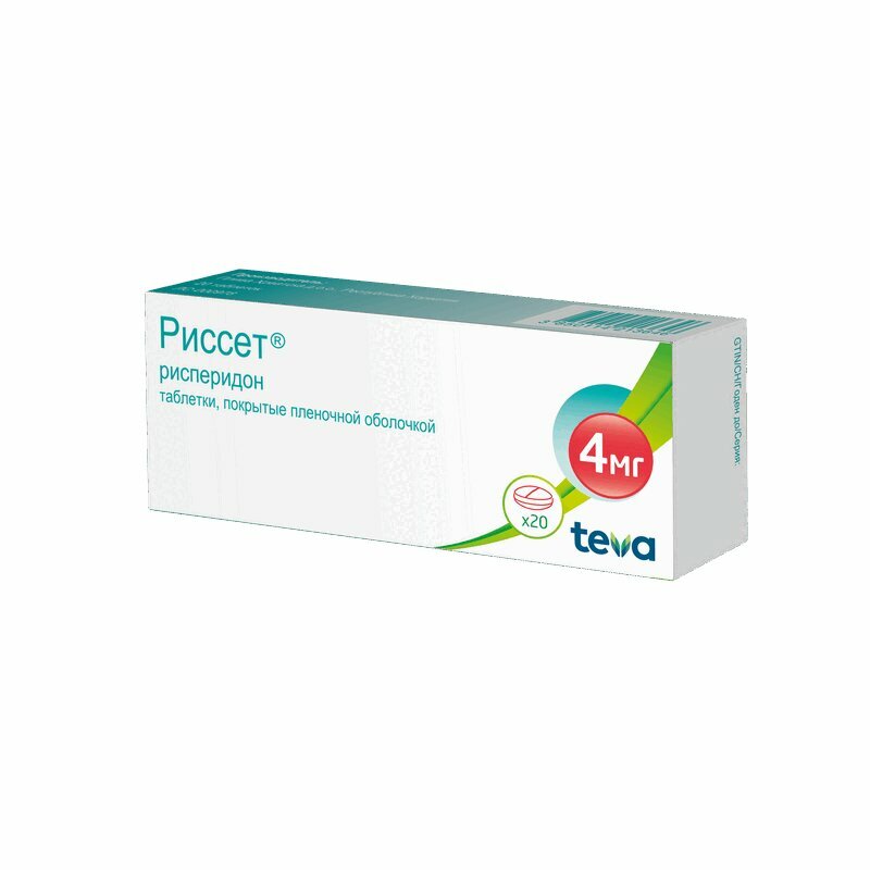 В 1 таб. : рисперидон 4 мг. Вспомогательные вещества: лактозы моногидрат - 132 мг, целлюлоза микрокристаллическая - 56.486 мг, крахмал кукурузный - 34.486 мг, карбоксиметилкрахмал натрия - 10 мг, тальк - 1.514 мг, магния стеарат - 1.514 мг. Состав пленочной оболочки: опадрай II 31F58914 белый (гипромеллоза, лактозы моногидрат, титана диоксид (E171), макрогол 4000, натрия цитрата дигидрат) - 9.91 мг, краситель хинолиновый желтый (E104) - 75 мкг, индигокармин (E132) - 15 мкг.