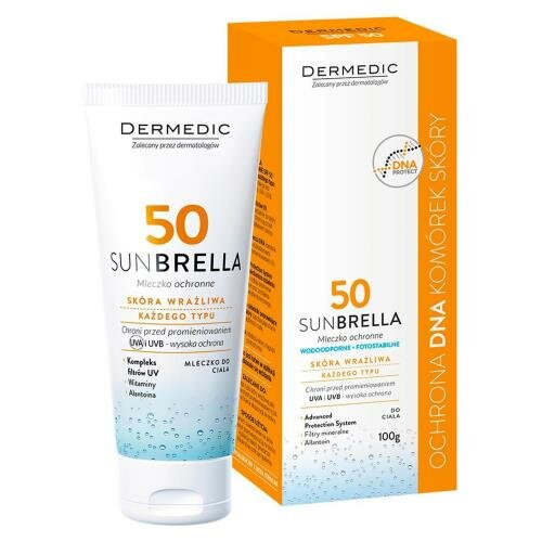 Продукты SUNBRELLA обеспечивают эффективную и долговременную защиту от излучения УФ-А и УФ-В – от SPF 15 до SPF 50+ содержат RonaCare AP – инновационный, активный компонент, гарантирующий повышенную защиту кожи от солнечного излучения (24 часа в сутки при соответствующем применении). Дермокосметические средства «Dermedic» из серии «SUNBRELLA» - это эффективная защита кожи от различного типа вредного воздействия ультрафиолетовых лучей.
