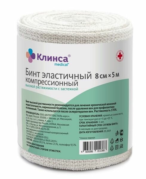 Клинса Medical бинт эластичный высокой растяжимости 8 см х 500 см