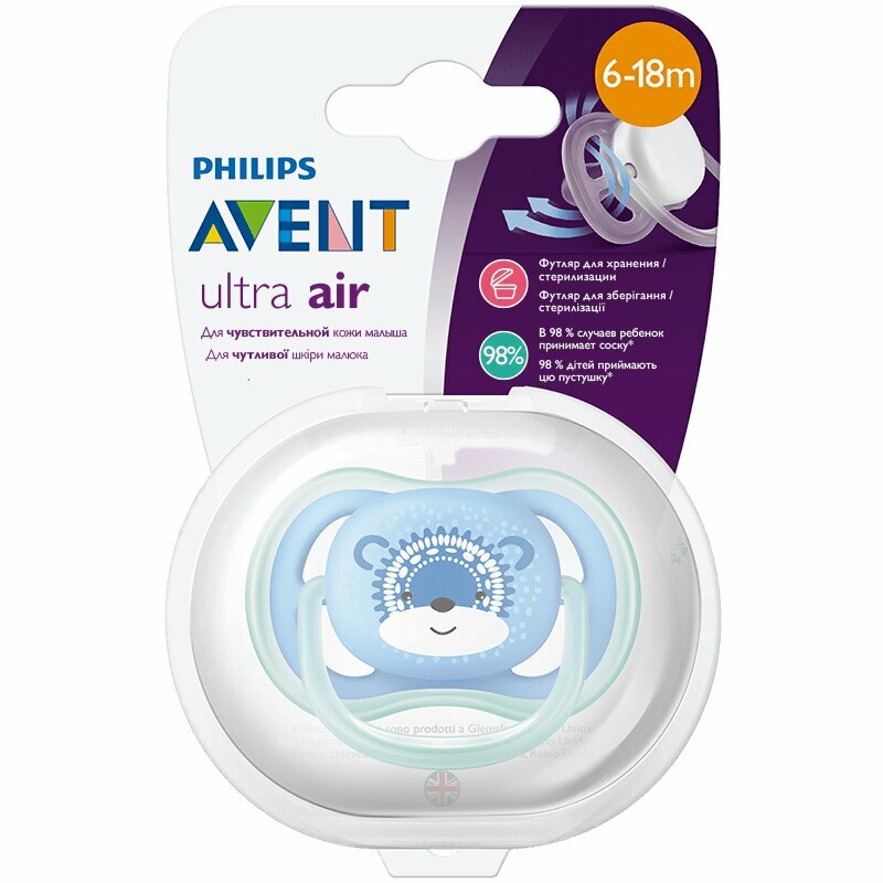 Успокойте своего малыша с помощью пустышки, которая позволяет коже дышать. Пустышка Philips Avent ultra air имеет большие вентиляционные отверстия, поддерживающие сухость кожи. Легкий нагубник обеспечивает максимальный поток воздуха. Доступно несколько вариантов расцветки.