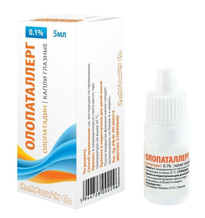 Инфекционные заболевания: нечасто - ринит. Со стороны иммунной системы: частота неизвестна - повышенная чувствительность к олопатадина, отечность лица. Со стороны нервной системы: часто - головная боль, дисгевзия; нечасто - головокружение, гипестезия; частота неизвестна - сонливость. Со стороны органа зрения: часто - боль в глазу, раздражение глаза, синдром "сухого" глаза, необычные ощущения в глазу; нечасто - эрозия роговицы, дефект эпителия роговицы, точечный кератит, кератит, накопление красящего пигмента в области дефекта роговицы при проведении диагностических проб, выделения из глаз, светобоязнь, затуманивание зрения снижение остроты зрения, блефароспазм, дискомфорт в глазу, зуд в глазу, фолликулез конъюнктивы, изменения конъюнктивы, чувство инородного тела в глазу, слезотечение, эритема век, отек век, изменения век, конъюнктивальная инъекция; частота неизвестна - отек роговицы, отек конъюнктивы, конъюнктивит, мидриаз, нарушение зрительных функций корочки на краях век. Со стороны дыхательной системы: часто - сухость во рту; частота неизвестна - диспноэ, синусит. Со стороны ЖКТ: частота неизвестна - тошнота, рвота. Со стороны кожи и подкожно-жировой клетчатки: нечасто - контактный дерматит, чувство жжения кожи, сухость кожи; частота неизвестна - дерматит, эритема. Общие нарушения: часто - повышенная утомляемость; частота неизвестна - астения, чувство недомогания.