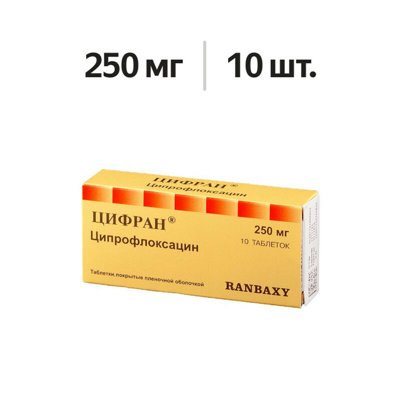 1 таблетка содержит: ципрофлоксацина гидрохлорид 297,07 мг, эквивалентный ципрофлоксацину 250 мг.
