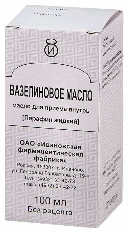 На 100 мл: парафин жидкий (вазелиновое масло) - 100 мл.