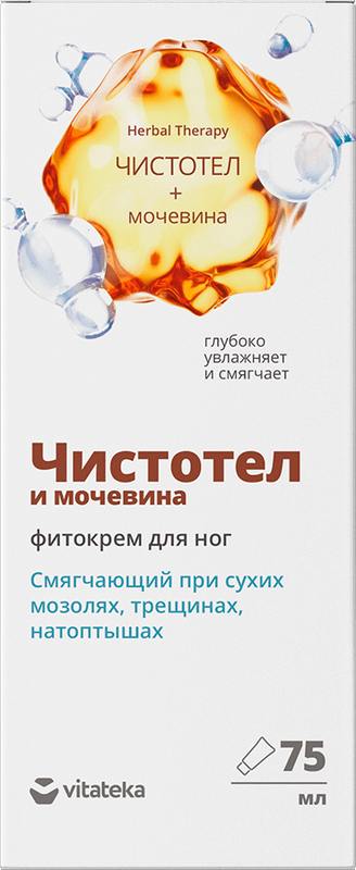 вода, мочевина, глицерин, стеарин, глицерил стеарат, цетеариловый спирт, пропиленгликоль, кукурузное масло, вазелиновое масло, токоферола ацетат, аллантоин, экстракт коры дуба, экстракт чистотела, экстракт подорожника, экстракт арники, экстракт мяты, масло чайного дерева, триэтаноламин, лимонная кислота, метилпарабен, пропилпарабен, бензиловый спирт, метилхлороизотиазолинон, метилизотиазолинон, БГТ, карамель