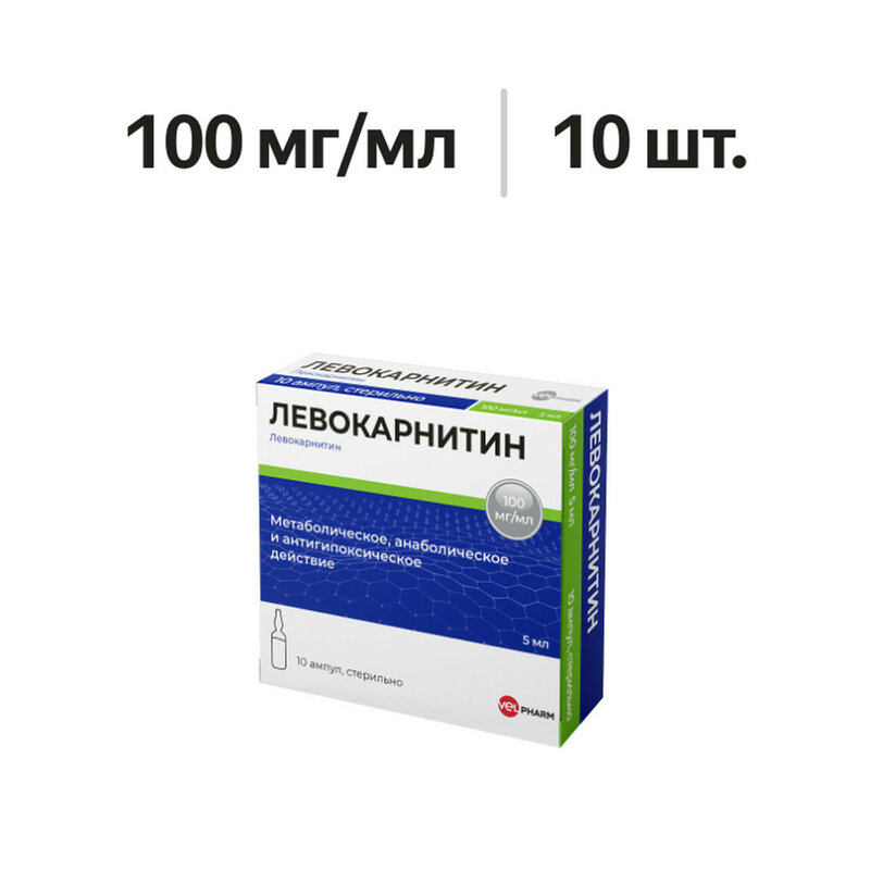 Действующее вещество - левокарнитин 100 мг. Вспомогательные вещества: хлористоводородной кислоты раствор 1М, вода для инъекций.