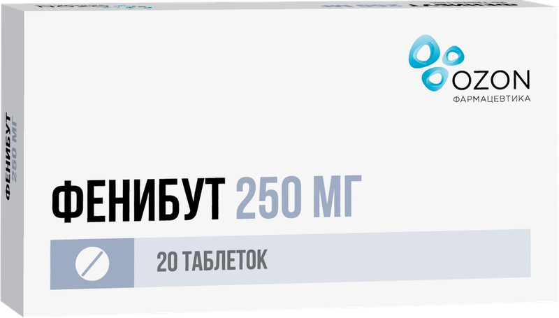 1 таблетка содержит: аминофенилмасляной кислоты гидрохлорид (фенибут) 250 мг. Вспомогательные вещества: лактозы моногидрат - 180 мг, крахмал картофельный - 56 мг, повидон К30 - 9 мг, кальция стеарата моногидрат - 5 мг.