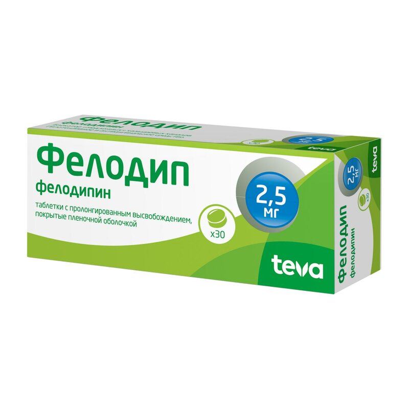 1 таблетка содержит: фелодипин 2.5 мг. Вспомогательные вещества: лактозы моногидрат - 21.45 мг, целлюлоза микрокристаллическая (тип Avicel PH101) - 48 мг, гипромеллоза (Methocel E50LV) - 110 мг, повидон (тип K-25) - 7.35 мг, пропилгаллат - 0.067 мг, целлюлоза микрокристаллическая (тип Emcocel 90M) - 8 мг, кремния диоксид коллоидный - 1.3 мг, магния стеарат - 0.833 мг.