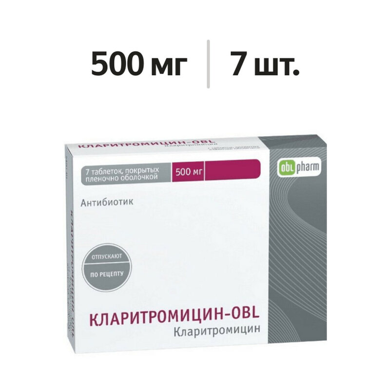 Кларитромицин является полусинтетическим антибиотиком группы макролидов и оказывает антибактериальное действие, взаимодействуя с 50S рибосомальной субъединицей и подавляя синтез белка бактерий, чувствительных к нему. Кларитромицин продемонстрировал высокую активность in vitro в отношении как стандартных лабораторных штаммов бактерий, так и выделенных у больных в ходе клинической практики. Проявляет высокую активность в отношении многих аэробных и анаэробных грамположительных и грамотрицательных микроорганизмов. Минимальные подавляющие концентрации (МПК) кларитромицина для большинства возбудителей меньше, чем МПК эритромицина в среднем на одно Log2 разведение. Кларитромицин in vitro высокоактивен в отношении Legionella pneumophila, Mycoplasma pneumoniaе. Оказывает бактерицидное действие в отношении Helicobacter pylori, данная активность кларитромицина выше при нейтральном pH, чем при кислом. Кроме того, данные in vitro и in vivo указывают на то, что кларитромицин действует на клинически значимые виды микобактерий. Enterobacteriaceae и Pseudomonas spp., также как и другие, не ферментирующие лактозу грамотрицательные бактерии, не чувствительны к кларитромицину. Препарат быстро всасывается в желудочно-кишечном тракте. Абсолютная биодоступность составляет около 50 %. При многократном приеме дозы препарата кумуляции практически не обнаружено и характер метаболизма в организме человека не изменялся. Прием пищи непосредственно перед приемом препарата увеличивал биодоступность препарата в среднем на 25 %. Кларитромицин может применяться до еды или во время еды. Кларитромицин связывается с белками плазмы крови на 70 % в концентрации от 0,45 до 4,5 мкг/мл. При концентрации 45 мкг/мл связывание снижается до 41 %, вероятно, в результате насыщения мест связывания. Это наблюдается только при концентрациях, многократно превышающих терапевтическую. Исследования in vivo на животных показали, что кларитромицин присутствует во всех тканях, за исключением центральной нервной системы, в концентрациях, в несколько раз превышающих плазменные. Наиболее высокие концентрации (в 10–20 раз выше плазменных) обнаруживались в печени и легких.При назначении кларитромицина в дозе 250 мг 2 раза в сутки максимальная концентрация (Сmах) кларитромицина и 14-ОН-кларитромицина в плазме достигалась через 2–3 дня и составляла 1 мкг/мл и 0,6 мкг/мл соответственно. Периоды полувыведения (Т1/2) кларитромицина и его основного метаболита составили 3–4 часа и 5–6 часов соответственно. При назначении кларитромицина в дозе 500 мг 2 раза в сутки Сmах кларитромицина и 14-ОН-кларитромицина в плазме достигалась после приема 5-й дозы и составила в среднем 2,7–2,9 мкг/мл и 0,88–0,83 мкг/мл соответственно. Т1/2 кларитромицина и его основного метаболита составил 4,5–4,8 часа и 6,9–8,7 часа соответственно. Сmах 14-ОН-кларитромицина не увеличивалась пропорционально дозе кларитромицина, в то время как Т1/2 как кларитромицина, так и его гидроксилированного метаболита имел тенденцию к увеличению с повышением дозы. Такая нелинейная фармакокинетика кларитромицина в сочетании с уменьшением образования 14-гидроксилированных и Nдеметилированных продуктов при высоких дозах указывает на нелинейный метаболизм кларитромицина, который становится более выраженным при высоких дозах. Почками выводится около 37,9 % после перорального приема кларитромицина в дозе 250 мг и 46 %