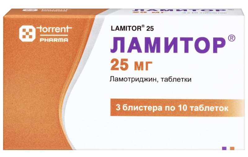 1 таблетка содержит: действующее вещество: ламотриджин 25 мг; вспомогательные вещества: лактозы моногидрат, целлюлоза микрокристаллическая, краситель железа оксид желтый, повидон-K30, карбоксиметилкрахмал натрия (Тип А), магния стеарат, тальк, кремния диоксид коллоидный