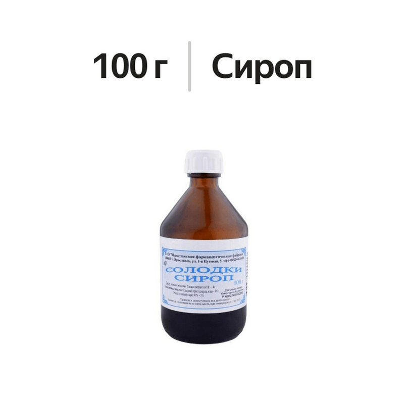 Активное вещество: Солодки экстракт густой 4 г. Вспомогательные вещества: Сахарный сироп (сахароза, вода) 86 г, Этанол (этиловый спирт) 90 % 10 г.
