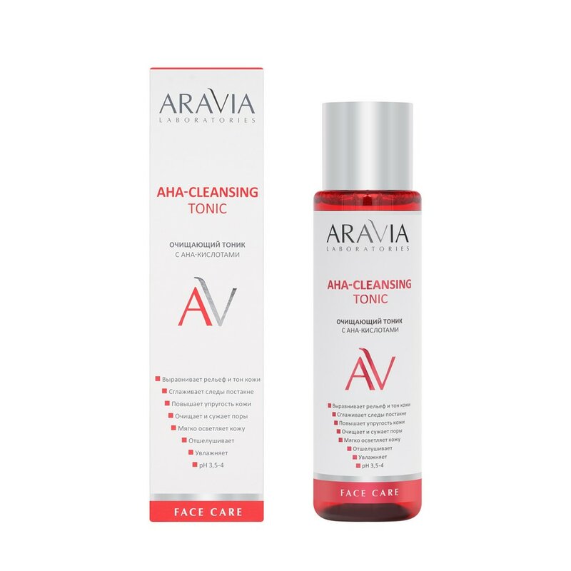Тоник для лица с комплексом AHA кислот мягко отшелушивает и обновляет кожу. При регулярном применении выравнивает рельеф и тон кожи, улучшает цвет лица, устраняет постакне, пигментацию и рубцы, борется с возрастными изменениями, сокращает глубину морщин, повышает упругость и эластичность. Тоник увлажняет и придает коже сияние. Очищает и сужает поры, осветляет черные точки. Ускоряет процессы регенерации и обновления клеток. Обладает противовоспалительным действием.