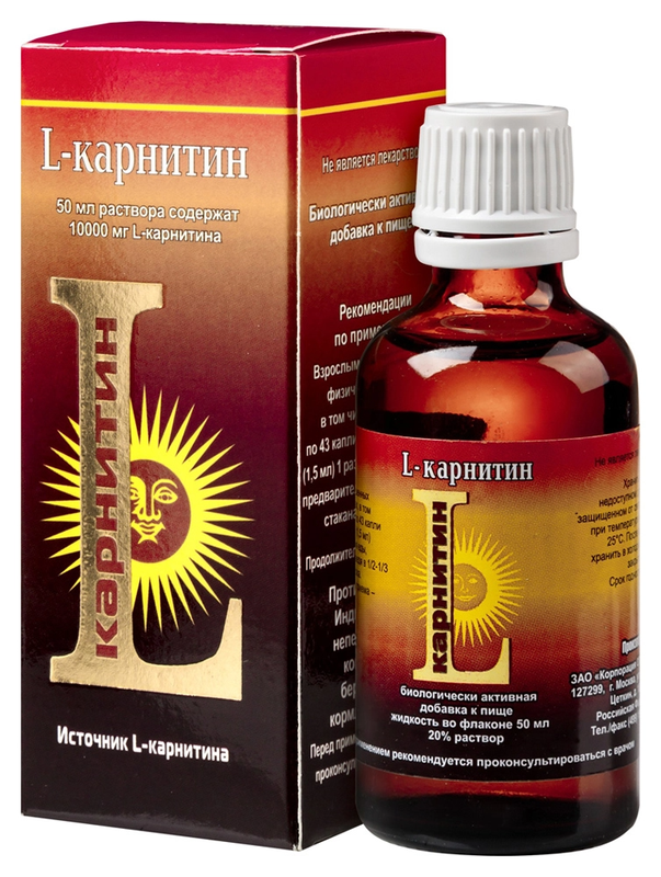 L-карнитина – 10 000 мг (20%), сорбиновая кислота - 0,05 %, вода до 50 мл.