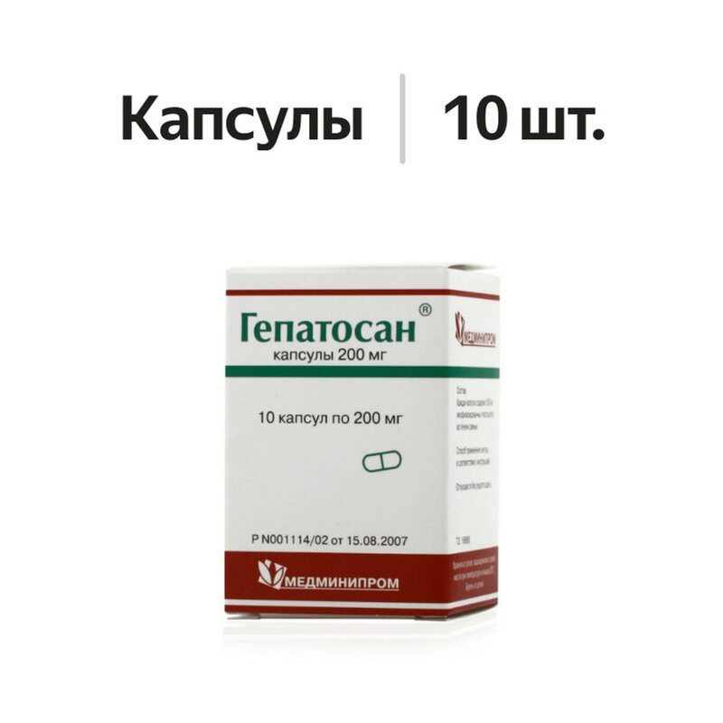 1 капсула: гептосан (представляет собой сублимационно высушенные клетки печени донорской свиньи) 200 мг. Состав желатиновой капсулы: титана диоксид - 1.333%, краситель желтый хинолиновый - 0.9197%, краситель желтый закатный - 0.0044%), желатин - до 100%.