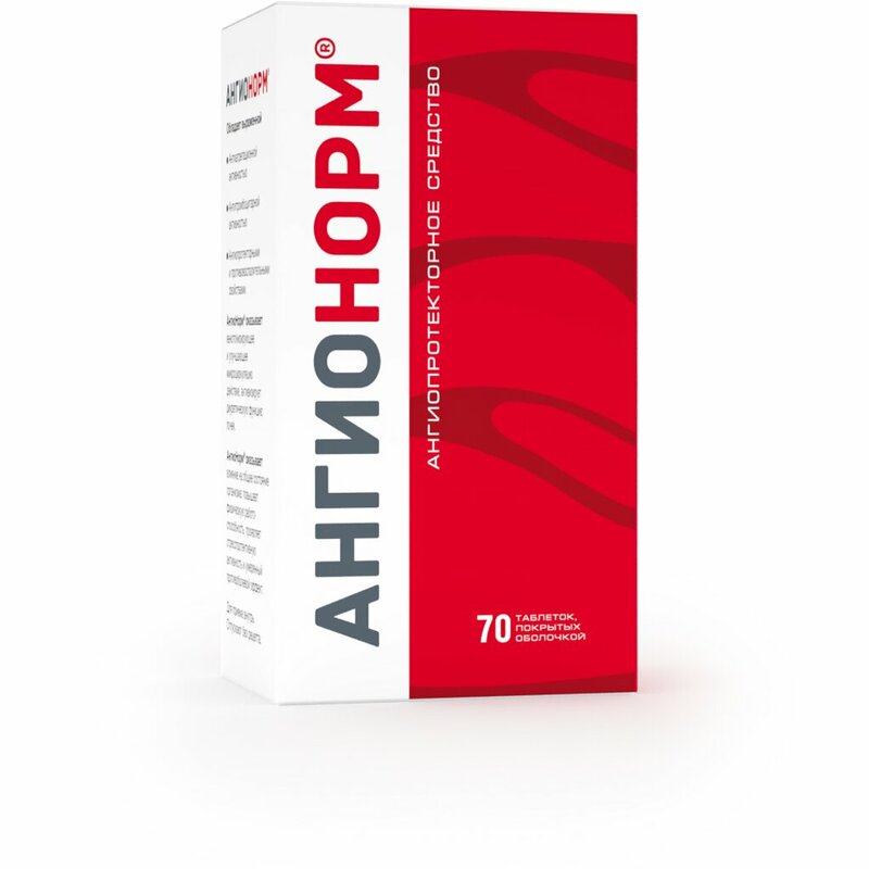 АнгиоНорм обладает выраженной антиагрегационной, антитромбоцитарной активностью, ангиопротекторными и противовоспалительными свойствами, оказывает венотонизирующее и улучшающее микроциркуляцию действие, активизирует диуретическую функцию почек. АнгиоНорм® оказывает влияние на общее состояние организма: повышает физическую работоспособность, проявляет стресс-протективную активность и умеренный противоболевой эффект.