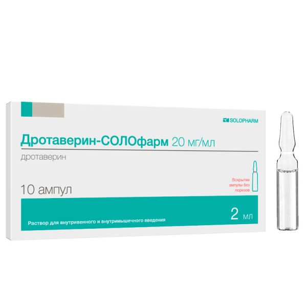 Спазмолитик миотропного действия. По химической структуре и фармакологическим свойствам близок к папаверину, однако превосходит его по эффективности и продолжительности действия. Дротаверин эффективен при спазмах гладкой мускулатуры как нейрогенного, так и мышечного происхождения. Независимо от типа вегетативной иннервации, дротаверин расслабляет гладкую мускулатуру жкт, желчевыводящих путей, мочеполовой системы. Вследствие своего сосудорасширяющего действия дротаверин улучшает кровоснабжение тканей. После приема внутрь дротаверин быстро абсорбируется из ЖКТ. После пресистемного метаболизма в системный кровоток поступает 65 % дозы. Cmax дротаверина в плазме крови достигается через 45-60 мин. Связывание с белками плазмы - 95-98%. Равномерно распределяется в тканях, проникает в гладкомышечные клетки. Не проникает через ГЭБ; дротаверин и/или его метаболиты могут незначительно проникать через плацентарный барьер. Дротаверин почти полностью метаболизируется в печени. T1/2 дротаверина составляет 8-10 ч. В течение 72 ч дротаверин практически полностью выводится из организма. Около 50 % выводится почками и около 30 % - через ЖКТ. Дротаверин главным образом экскретируется в виде метаболитов, неизмененная форма дротаверина в моче не обнаруживается. При парентеральном введении дротаверин быстро всасывается. Биодоступность - 100 %. Начало действия - через 2-4 мин. Cmax в плазме крови достигается через 30-40 мин.