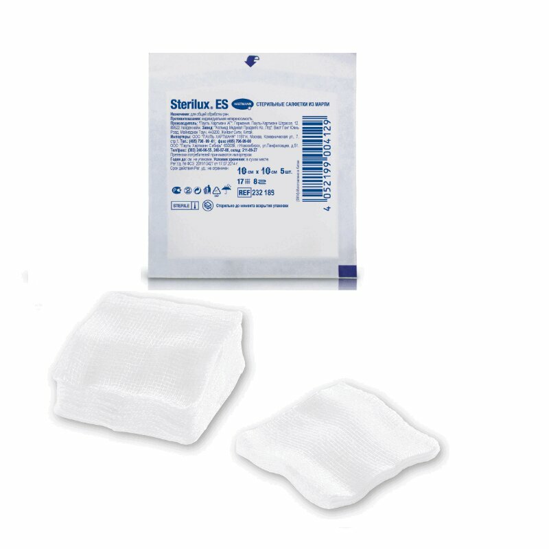 Салфетки Sterilux ES стерильные 17 нитей 8 слоев 10 см х 10 см 5 шт.